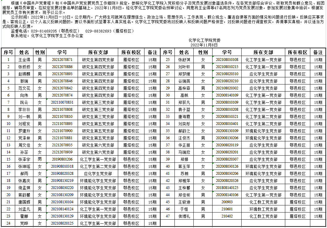 2022年下半年党员发展对象公示