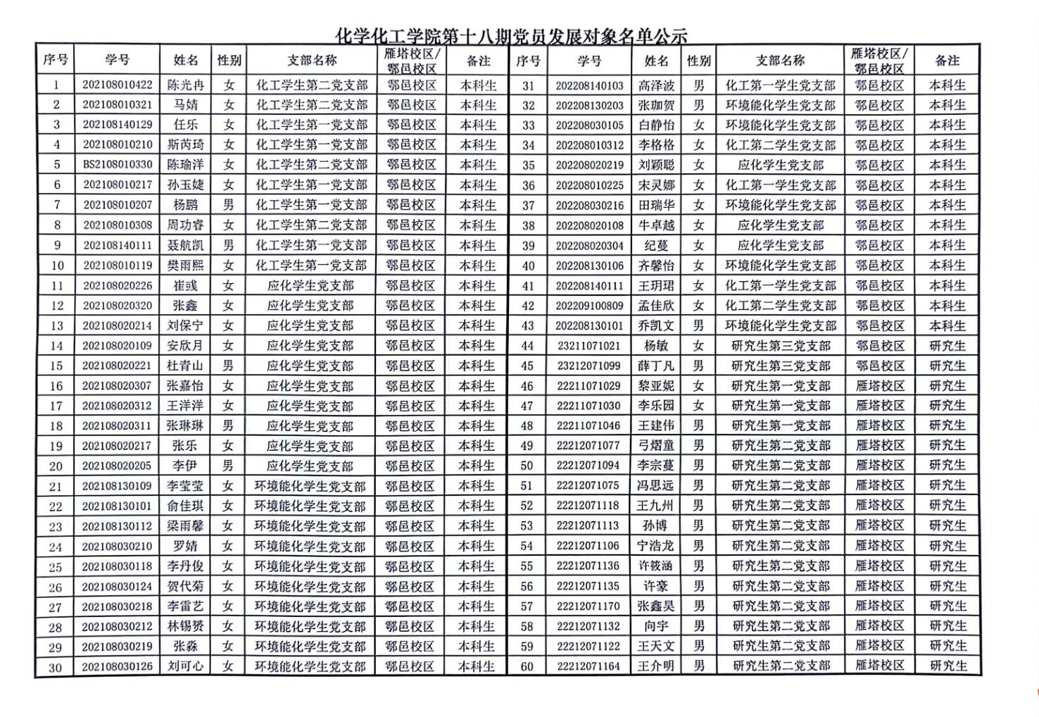 根据《中国共产党章程》和《中国共产党发展党员工作细则》规定,参照yl8858永利集团入党积极分子及党员发展对象遴选条件,在各党支部综合评议、听取党员和群众意见、班、团推荐,辅导员审查,在拟定发展对象名单的基础上。2024年5月15日,经yl8858永利集团党委会预审讨论,同意将陈光冉等60名同志列为党员发展对象,参加发展对象集中培训。根据发展党员工作有关要求,现予以公示。