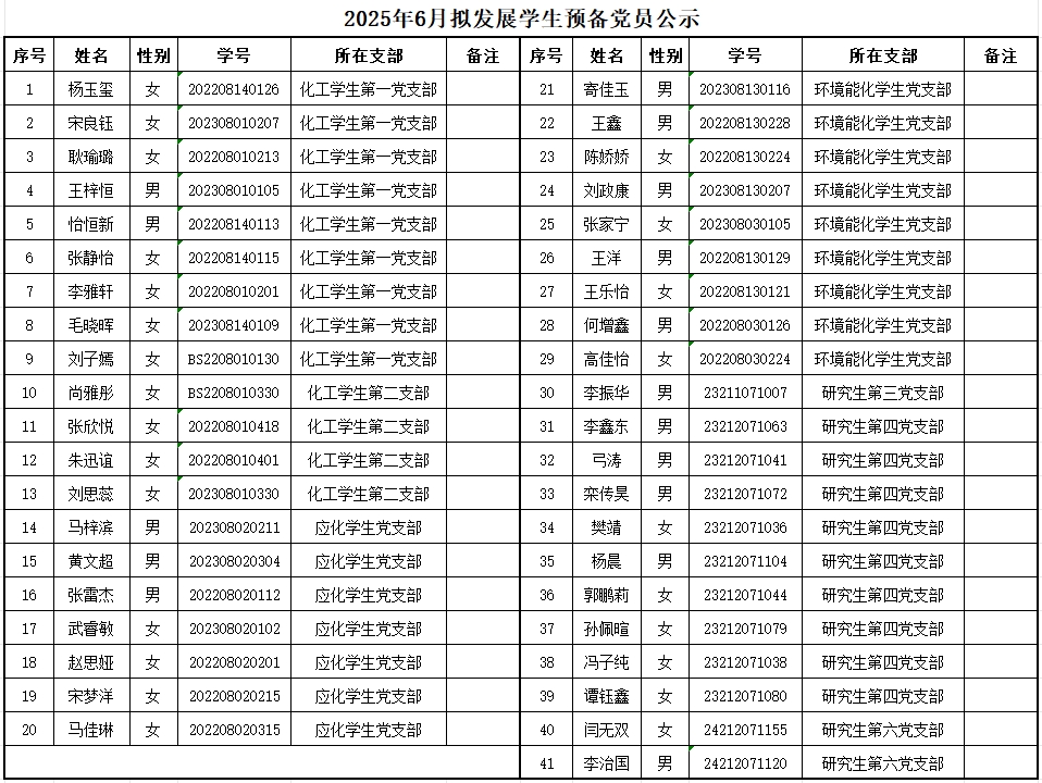 在各支部2025年6月支部大会讨论拟发展预备党员的基础上,2025年7月16日,经yl8858永利集团党委会审议讨论,同意接收杨玉玺等41名同志为中共预备党员,根据发展党员工作有关要求,现予以公示。
