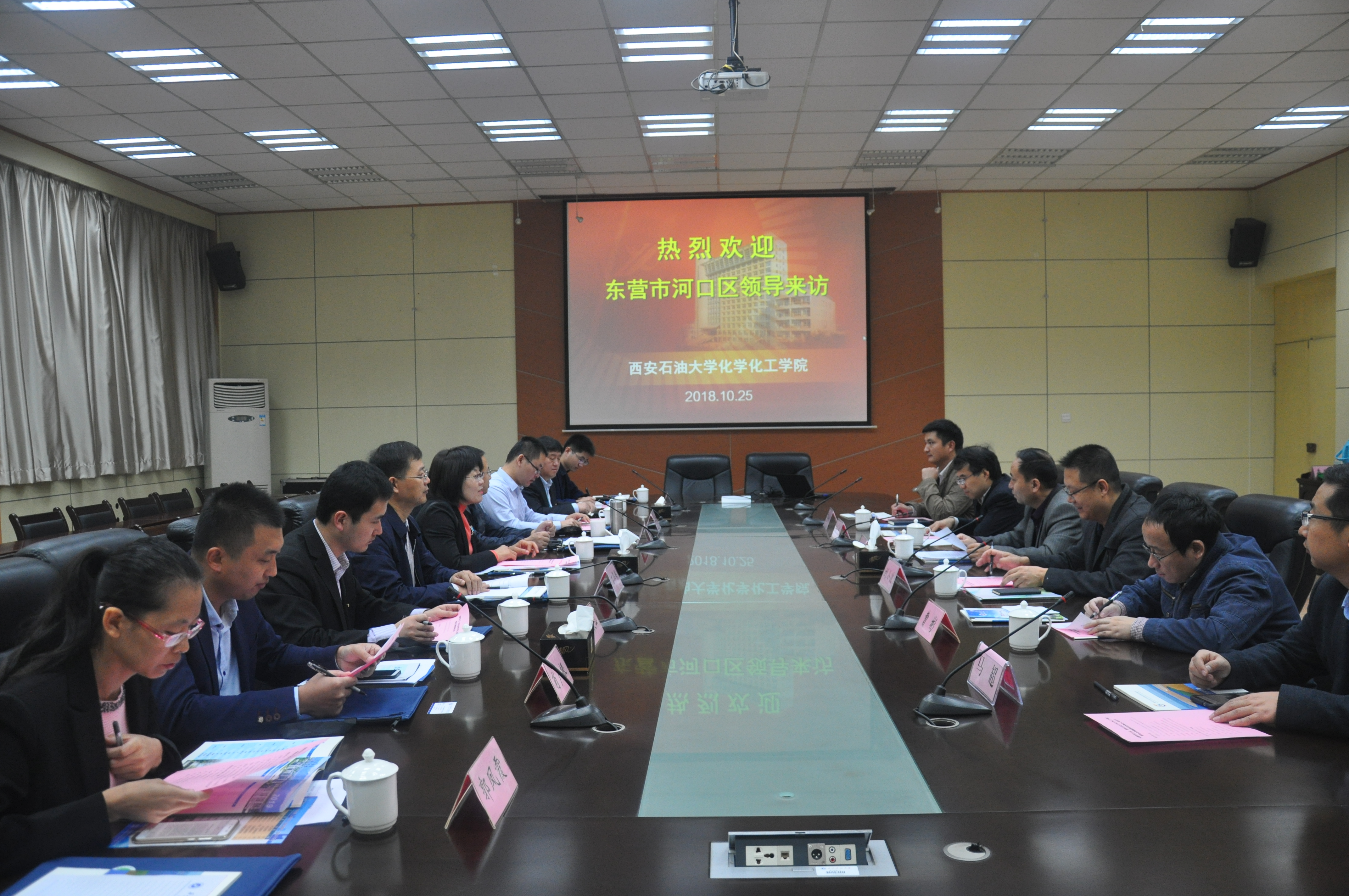 学院党委书记侯琦首先对河口区人社局、财政局、人才办和相关企业的来访表示欢迎。其次,侯书记介绍了学校发展历史、办学规模、学科设置、教学科研、学生就业和对外交流等学校基本情况。学院党委副书记刘小波介绍了学院发展、师资队伍、专业设置、教学科研和人才培养等学院基本情况,并对学院近年来就业工作和单位走访等毕业生就业工作做了相关介绍。
