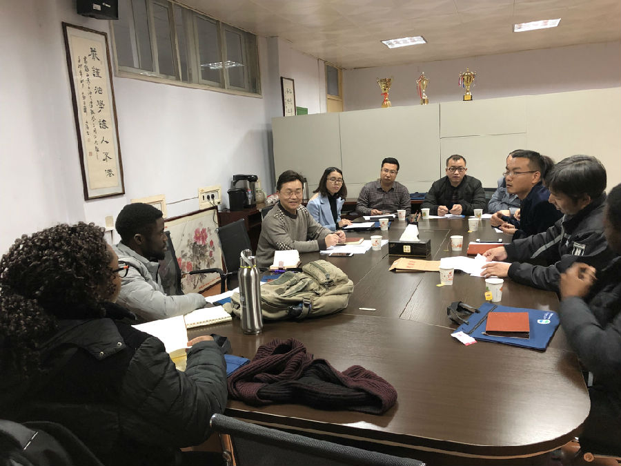 座谈会上,学院李善建副院长首先对于2018级外籍留学生来我院学习表示感谢和欢迎。随后,李院长依次向2018级留学生介绍了出席座谈会的各位老师,并耐心询问留学生在学习和生活等方面的有关情况,对于他们关心的问题和情况进行了深入交流。2018级尼日利亚留学生达米安和欧拉依次发言,首先他们对于学院举办此次座谈,表示感谢和高兴,对于学院安排的硕士生指导老师十分满意;同时,他们主要对于专业课程的设置和整个硕士期间培养计划提出了自己的疑问和建议。学院李善建副院长和留学生指导老师对于留学生的疑问和建议,给予了细致、全面的解答。