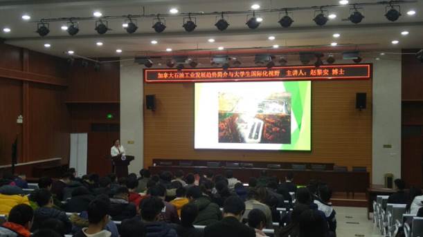 1月3日晚7:00,在鄠邑校区人文经管楼118报告厅,赵老师为我院本科生做了题为“加拿大石油工业发展趋势简介与大学生国际化视野”的报告。yl8858永利集团党委副书记刘小波主持报告会,yl8858永利集团院长王文珍及师生共计三百余人参加了报告会。赵黎安博士首先从加拿大阿尔贝塔省的能源情况出发,简要介绍了CEPro公司的发展历程及合作伙伴,并通过石油行业最著名的三个数据库让大家认识到了数据共享带来的优势。紧接着她从土壤恢复技术,提高天然气采收率以及油气资产的规程标准三个方面重点介绍了CEPro公司的主要业务。最后赵老师从国际化的角度出发,提出了大学生具有创造性、领导力、合作性和团队协作精神的重要性,并鼓励学生都要做一个富有激情、和善诚信、专业敬业、善于学习的人。报告会结束后,赵老师与现场师生进行互动,并耐心回答了同学们提出的问题。