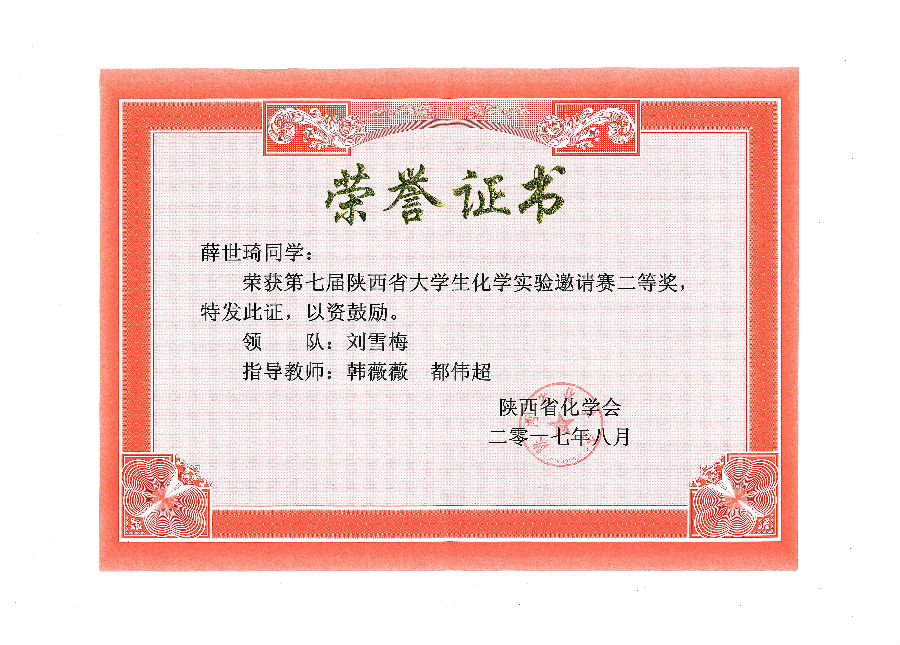 2017年8月23至25日,由陕西省化学会主办、西北大学承办的第七届陕西省大学生化学实验邀请赛在西北大学化学材料与科学学院举行,本次竞赛共有来自西安交通大学、西北大学、陕西师范大学、西北工业大学等陕西省内22所高校代表队的69名选手参加。