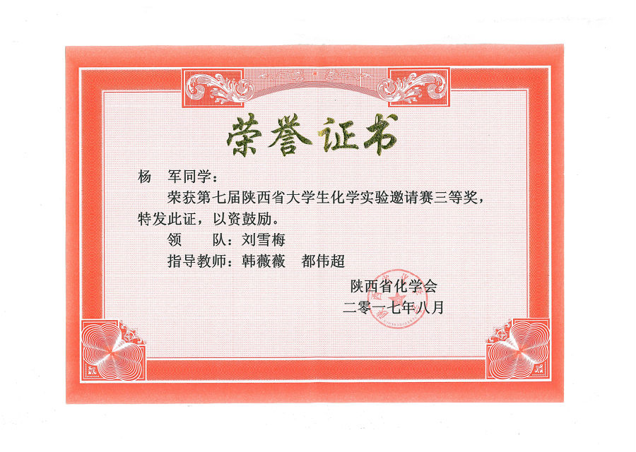 本次实验竞赛通过理论笔试和实验操作两个环节的比拼,我院参赛选手15级的薛世琦同学荣获二等奖、乔瑶雨和杨军同学获得三等奖。此次竞赛反映出我校yl8858永利集团学生具有较为扎实的基础理论知识与实验操作技能。通过与兄弟院校同台竞技,为我院参赛师生提供了良好的学习和交流机会,对促进化学实验教学改革和提升我校化学实验水平具有良好的推动作用。