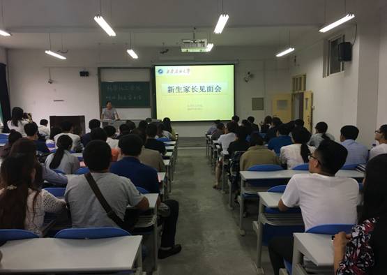 学院侯琦书记首先代表学院对各位新生家长表示了欢迎和感谢。其次,侯书记介绍了学院的历史沿革和现有学科、专业设置等情况,并围绕学院师资队伍、管理机构、人才培养、学科建设、实验室建设、科学研究、对外合作和学生工作等情况做了介绍。最后,侯书记提出了三点建议:一是家长要引导新生完成从要我学到我要学的转变,帮助学生尽快适应大学生活。二是新生家长要加强与学校的沟通,重点关注学生的身心健康,引导学生健康成长成才。三是强化安全意识,提高学生对网络诈骗和传销组织的防范意识。