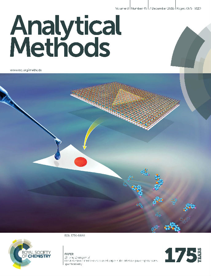 近日,我院快速分离分析新材料及新技术创新团队张智平教授等与中国科学计量研究院方向研究员和熊行创研究员所在课题组合作,在纸基质涂覆研究方面取得新进展。他们提出了一种简易的“抽滤涂覆”法,并将该方法制备出的金属有机骨架涂覆纸基质成功应用于纸喷雾电离源-质谱的高灵敏度分析。相关研究成果以封面文章的形式发表在《分析方法》(Analytical Methods,2016, 8(45): 8004-8014; http://pubs.rsc.org/en/journals/journalissues/ay#!issueid=ay008045&type=current&issnprint=1759-9660)上。