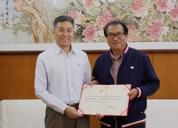 屈展校长为王尧宇教授颁发我校兼职教授聘书