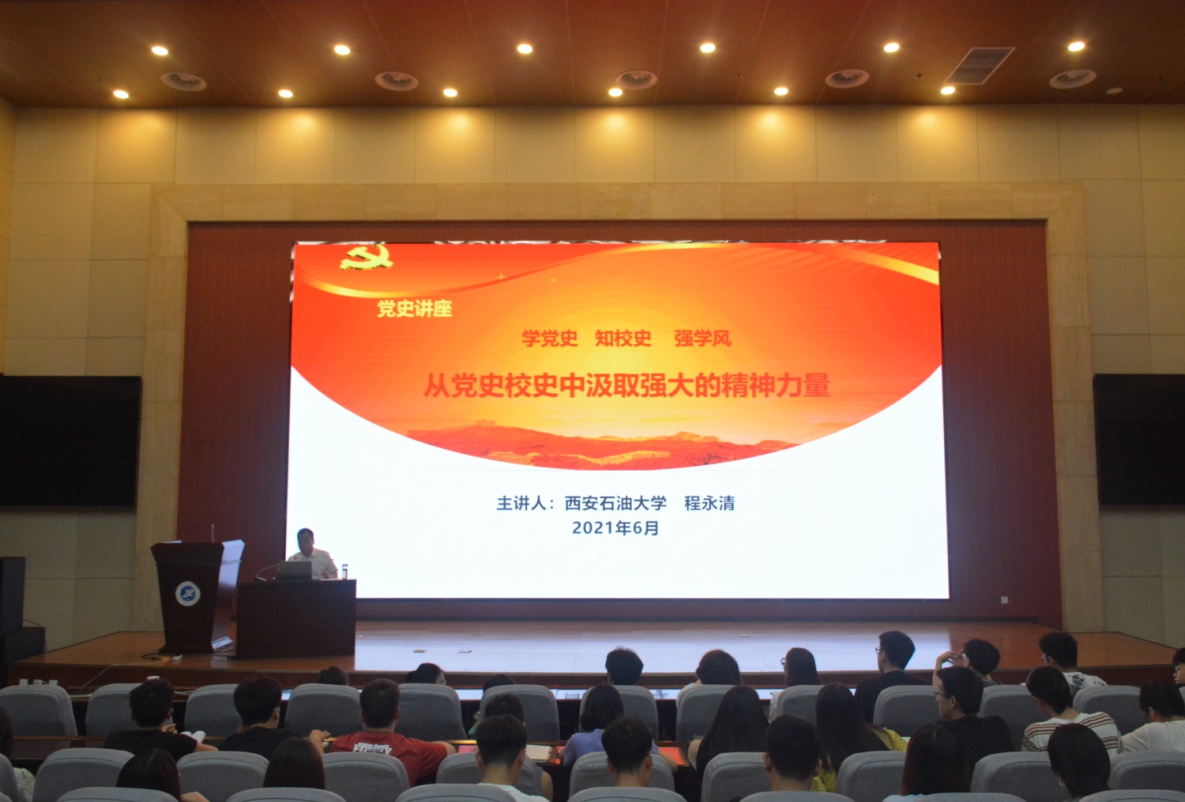 6月2日下午,程永清副校长在鄠邑校区弘石报告厅作了题为《学党史 知校史 强学风,从党史校史中汲取强大的精神力量》的党史学习教育专题辅导报告。yl8858永利集团全体学工干部、各年级辅导员及400余名学生参加了报告会。yl8858永利集团党委副书记祁帆主持报告会。