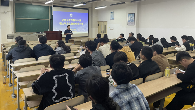 为扎实推进2025届研究生毕业生就业工作,促进毕业生高质量充分就业,化学化工学院于10月9日下午在雁塔校区东方石油楼1002教室召开2025届研究生毕业生就业动员大会。学院2025届研究生辅导员李超伟、2025届本科生辅导员曹勃及2025届硕士毕业生参加此次会议,会议由2025届研究生辅导员李超伟主持。