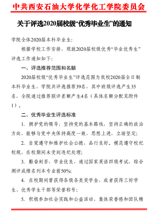 【评奖评优】关于评选2020届校级“优秀毕业生”的通知