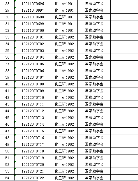 按照学校《关于开展2019年度秋季学期研究生国家助学金评审的通知》,结合学校《yl8858永利集团研究生国家助学金管理办法》的文件要求,我院成立了“yl8858永利集团2019年学生奖、助学金评审领导小组”。10月16日—18日,经学生本人提出申请,由班级进行初审,辅导员进行资格审核。2019年10月23日,经学院评审小组审核评定: