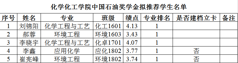 根据学校《关于做好2019年中国石油奖学金评审工作的通知》评选工作安排,yl8858永利集团组织开展了系列评审工作。按照工作要求,经yl8858永利集团评审会审定,拟推荐5名学生作为“中国石油奖学金”项目拟推荐人选。其中,经本人申报、年级专业初评,辅导员资格审查,拟推荐5人参加“中国石油奖学金”评定,现将推荐名单予以公示。