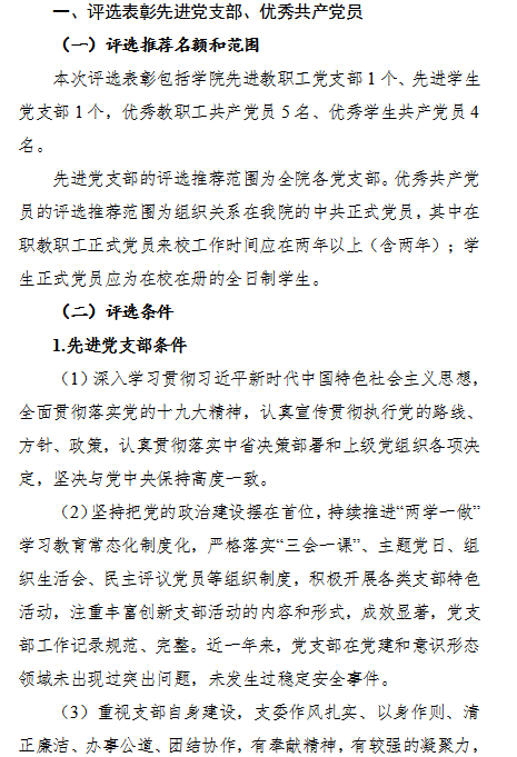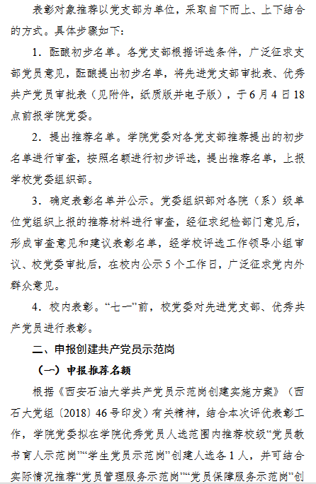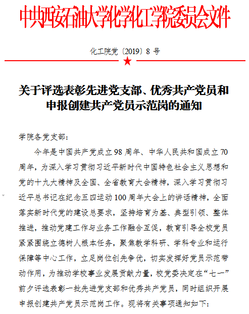 【党建工作】关于评选表彰先进党支部、优秀共产党员和 申报创建共产党员示范岗的通知