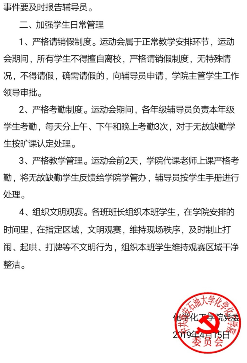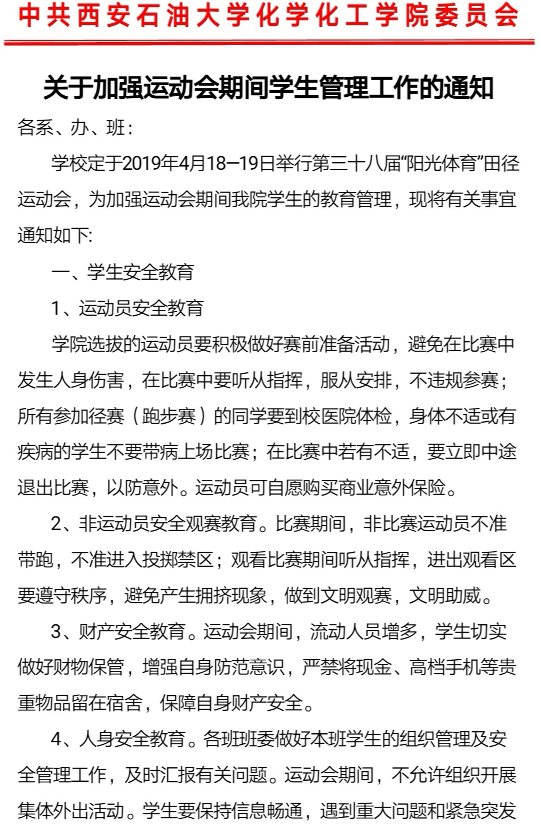 【学生工作】关于加强运动会期间学生管理工作的通知