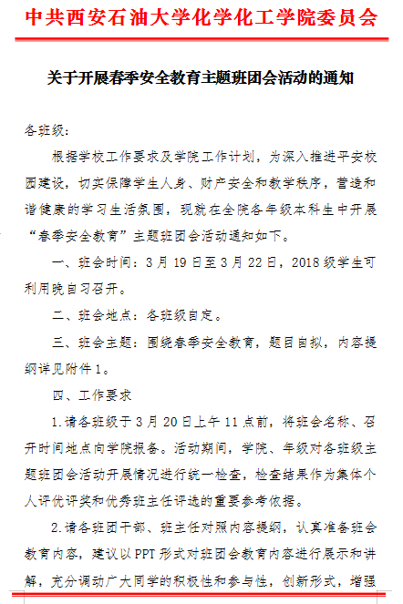 【安全教育】关于开展春季安全教育主题班团会活动的通知
