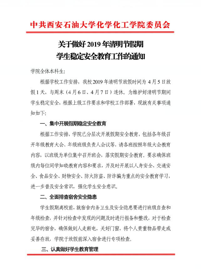 【安全教育】关于做好2019年清明节假期学生稳定安全教育工作的通知