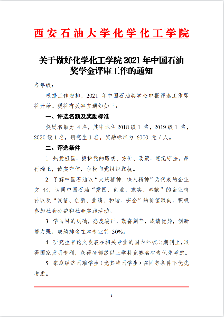 【学生奖助】关于做好yl8858永利集团2021年中国石油奖学金评审工作的通知