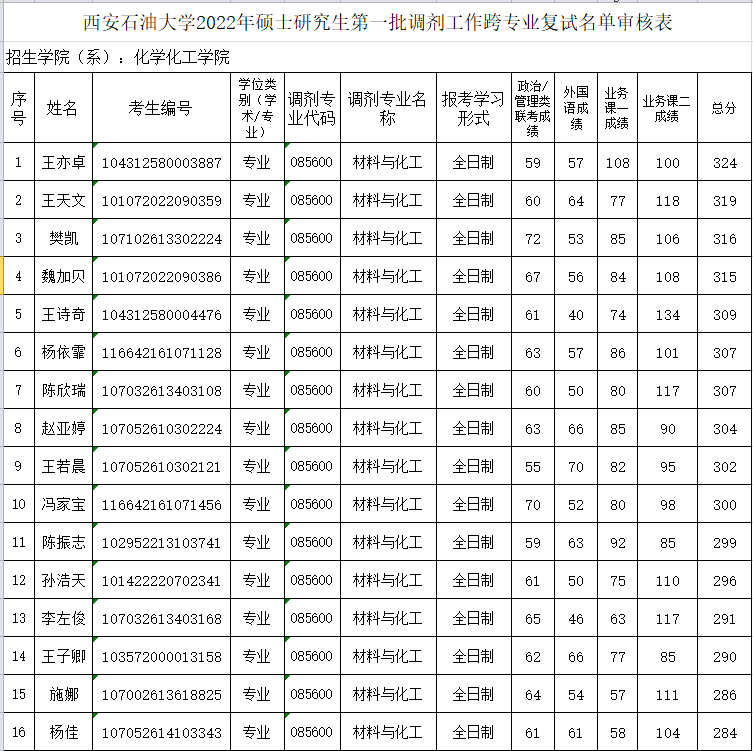 【招生工作】yl8858永利集团第一批调剂跨专业复试名单