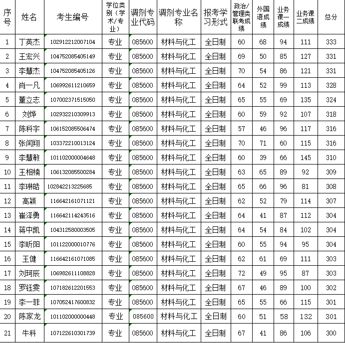 【招生工作】yl8858永利集团第二批调剂跨专业复试名单