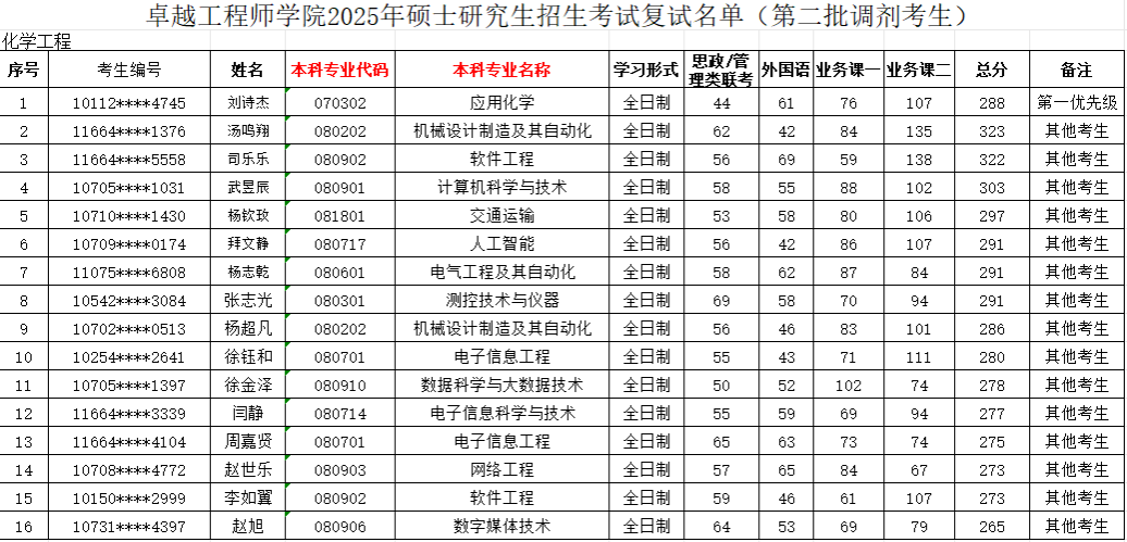 现将卓越工程师学院参加复试考生名单(调剂第二批)予以公布,请各位考生按照要求准时参加。如考生对复试名单有异议,请与我院办公室联系。