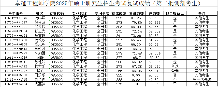 根据教育部及陕西省教育考试院相关文件精神和要求,现将卓越工程师学院2025年硕士研究生招生复试成绩(调剂第二批)予以公布。